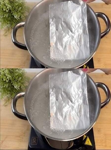 An innovative solution arises to address this common problem, using the amazing properties of aluminum foil. To start the process, heat water in a pot and add a spoonful of baking soda and half a spoonful of sugar.